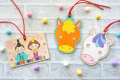 線画が予め印刷されているため、色塗りやデコレーションをしたり、裏にはお願い事などを書いてお楽しみいただけます。付属している赤紐で飾ることも!